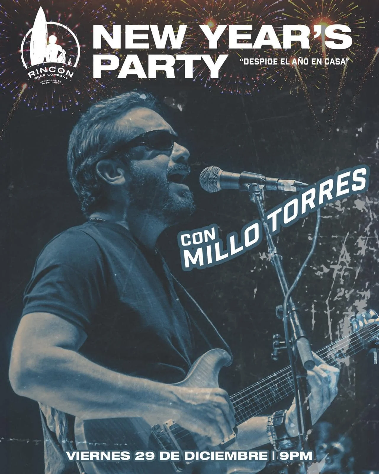 Rincón Beer Company estará despidiendo el año con buena música en su taproom en Rincón. La cervecería anunció que tendrá como invitado musical a Millo Torres el próximo viernes 29 de diciembre desde las 9:00 p.m.