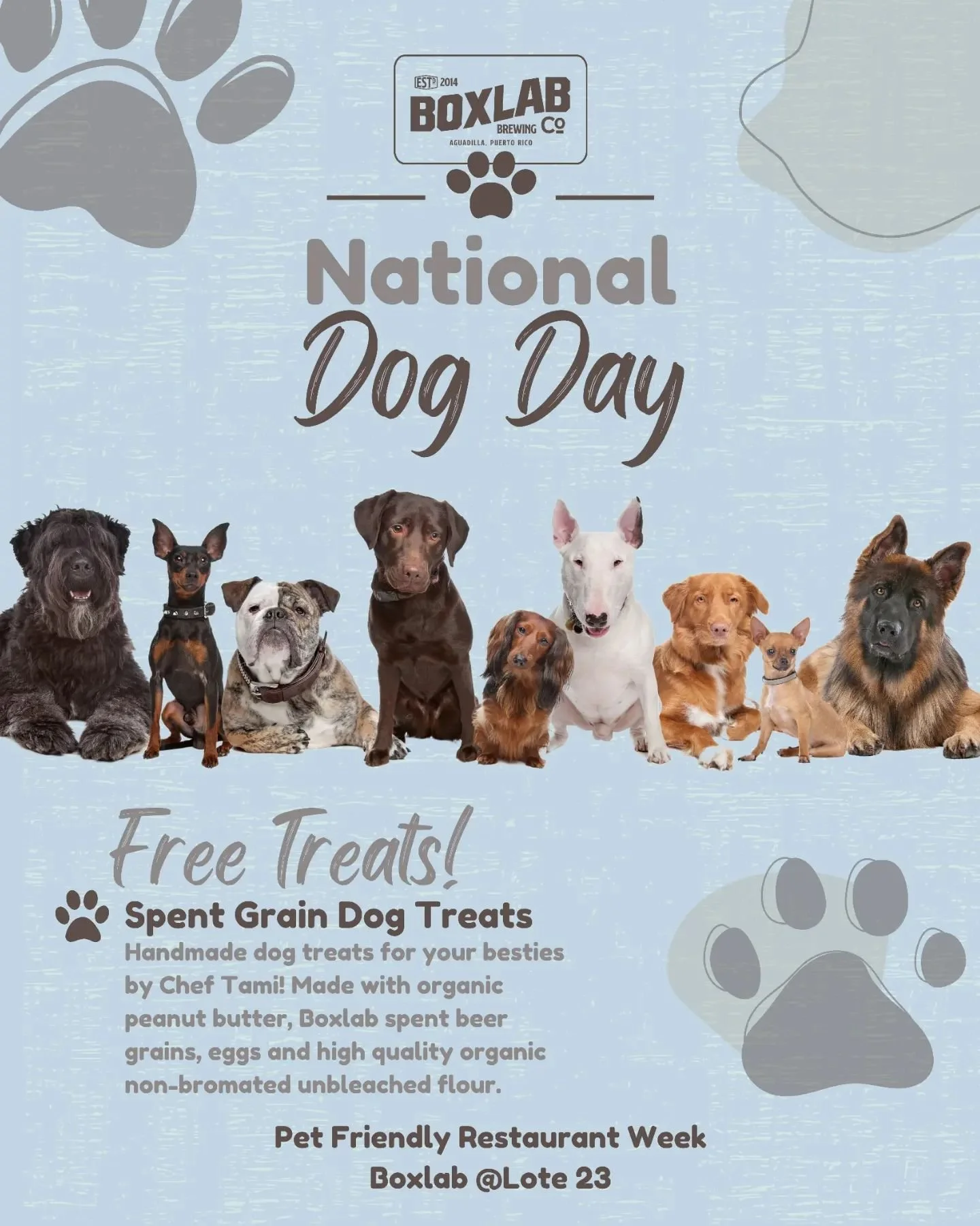 El sábado 26 de agosto se celebra el National Dog Day y Boxlab Brewing lo estará celebrando en su espacio en Lote 23 en Santurce. Mientras te das tu cerveza, tus perritos pueden disfrutar de “treats” creados por la chef de Boxlab Brewing, unas galletas elaboradas con mantequilla de maní orgánica, granos de cerveza reutilizados, huevos y harina orgánica sin blanquear no bromada de alta calidad.
