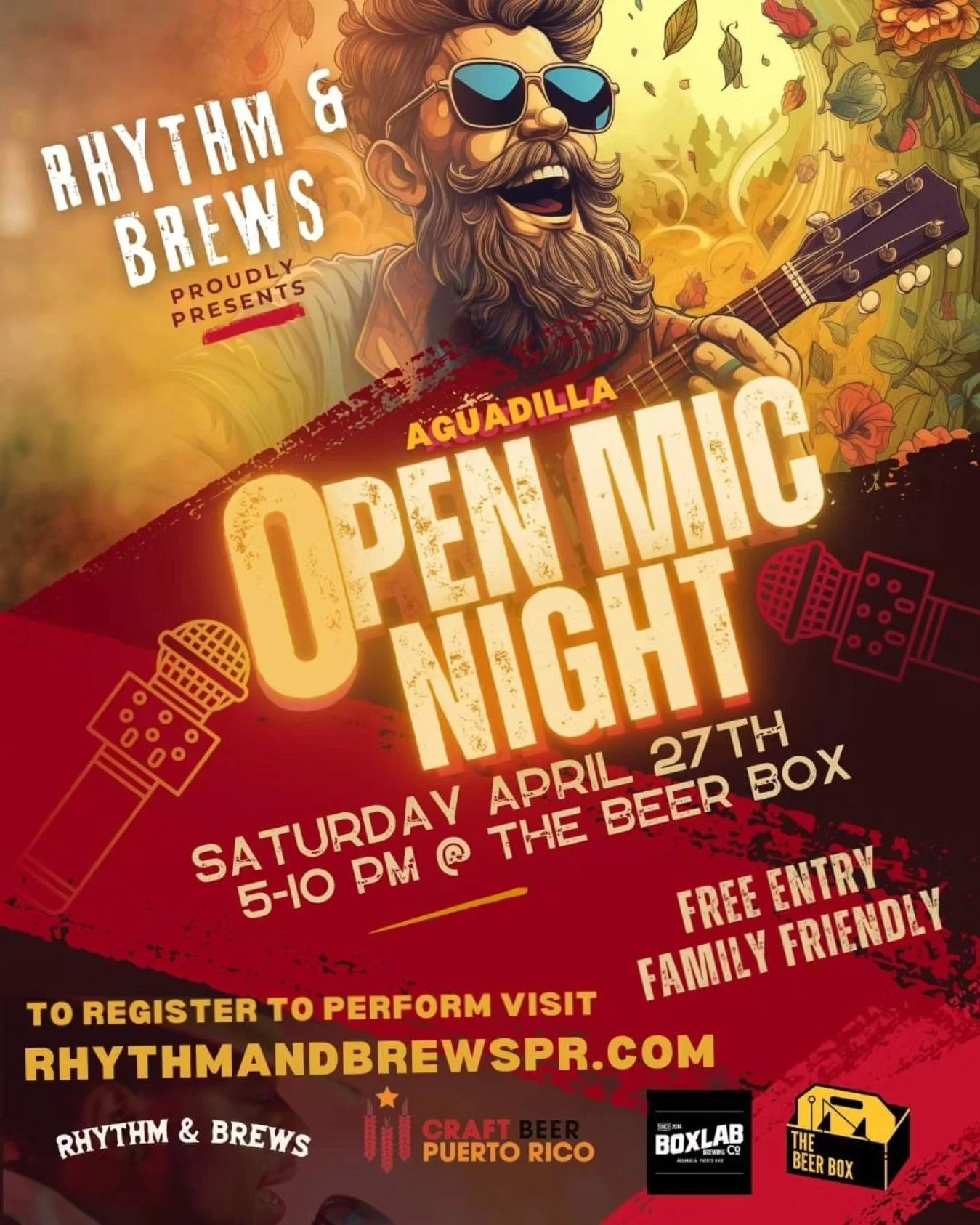 El sábado 27 de abril se llevará a cabo un Open Mic en The Beer Box en Aguadilla. El evento producido por Rhythm and Brews tiene una entrada libre de costo y es apto para toda la familia. Además podrás disfrutar de las excelentes cervezas de Boxlab Brewing y de comida de The Beer Box.