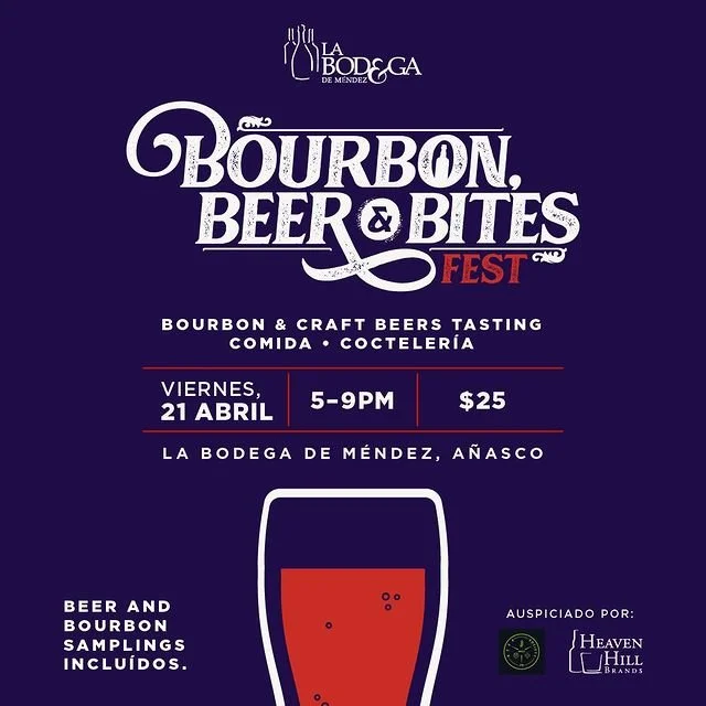 Méndez & Co y Beer Society se juntan para traer nuevamente el Bourbon, Beer & Bites Fest, esta vez en La Bodega de Méndez en Añasco. Este evento se llevará a cabo el viernes 21 de abril de 5:00 p.m. a 9:00 p.m.