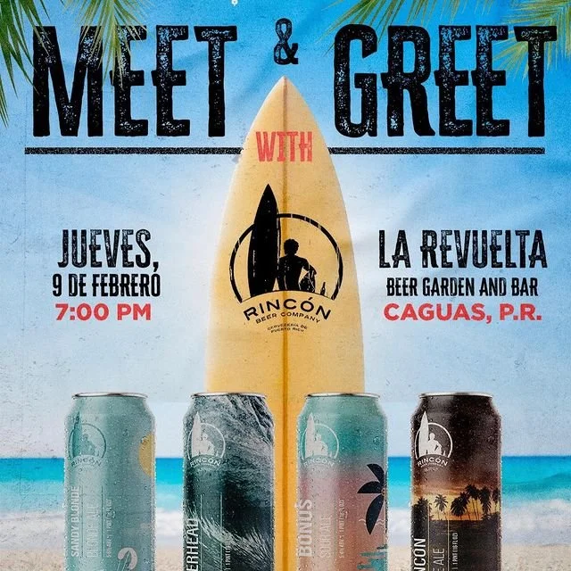 El jueves 9 de febrero el equipo de Rincón Beer Company visita La Revuelta Beer Garden en Caguas. El evento servirá como Meet & Greet, por lo que los asistentes podrán conocer al equipo detrás de RBC.