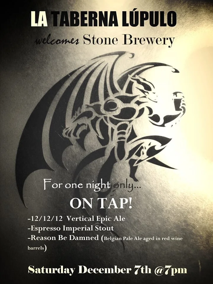 La buena gente de Stone Brewing regresa a Puerto Rico este próximo sábado 7 de diciembre para un evento muy particular. La cervecera estará tomando las riendas de Taberna Lúpulo y estará ofreciendo unas cervezas únicas en su clase.