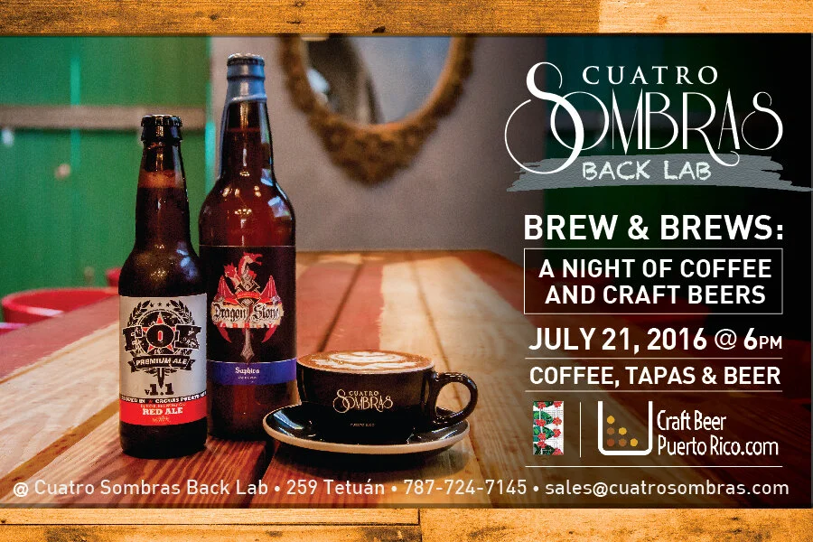 ¿Te gusta el café? ¿Te gusta la cerveza? ¿Qué tal ambos? Nos unimos a Cuatro Sombras para traerte el Brew and Brews: A night of coffee and craft beers, el cual se estará llevando a cabo el jueves 21 de julio a partir de las 6pm en Cuatro Sombras, Viejo San Juan.