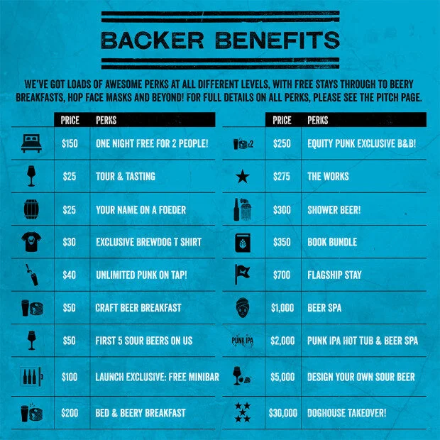 BrewDog le ofrece a los que inviertan una serie de beneficios a la vez que ayudan a que el proyecto se haga realidad más rápido. Se espera que la fase de diseño culmine en junio de este año y esté listo para operar en el tercer cuarto del próximo año.