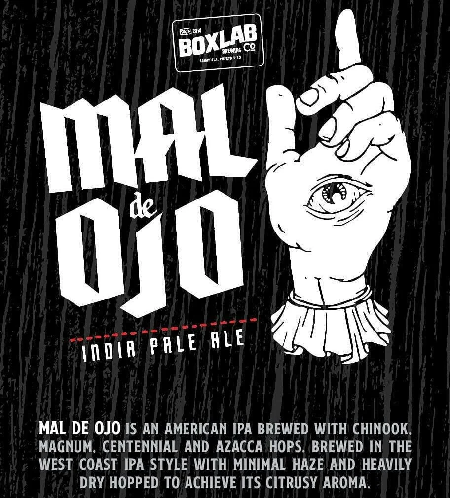 Boxlab anunció la salida hoy de su más reciente cerveza, Mal de Ojo IPA. Esta es una cerveza estilo West Coast style, elaborada con lúpulos Chinook, magnum, , Centennial y Azzaca. Dry hop para aroma cítrico.