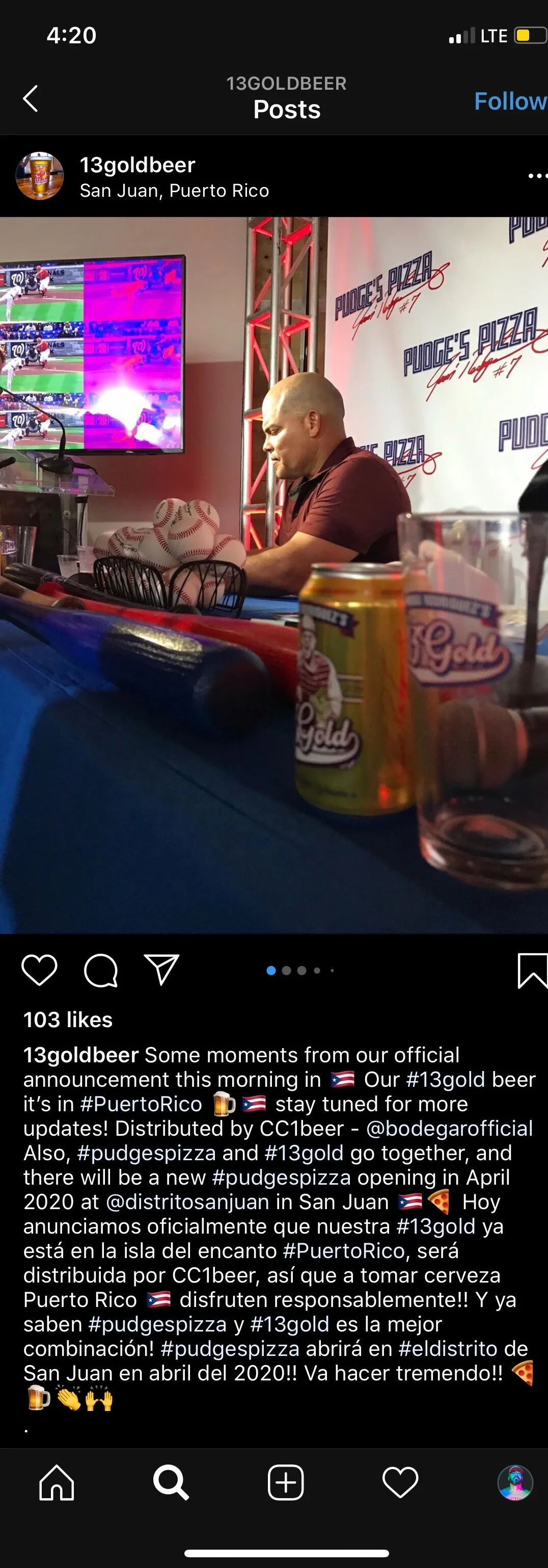 Resulta que la cuenta de Instagram de la cerveza 13 Gold (13goldbeer) anuncia a CC1, en otras palabras, Coca Cola de Puerto Rico (CC1), como su distribuidor. Esto nos estuvo muy raro, por lo que hemos estado indagando en el asunto y resulta que, en efecto, el cambio vino de sorpresa tan pronto como a finales de la pasada semana.