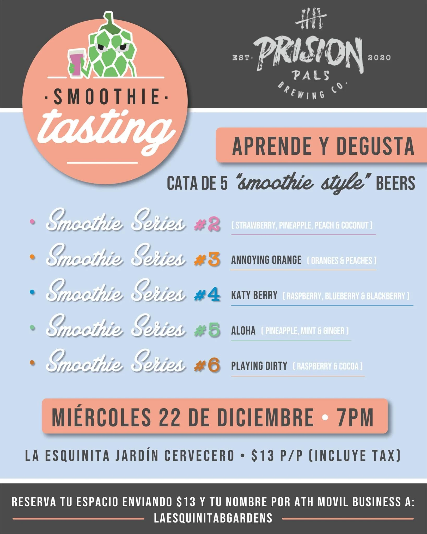 El evento se llevará a cabo en La Esquinita en Bayamón y los asistentes podrán degustar 5 cervezas del estilo “Smoothie”. Habrán premios y sorpresas para los asistentes y precios especiales en las selección de cervezas de Salitre Craft Beer