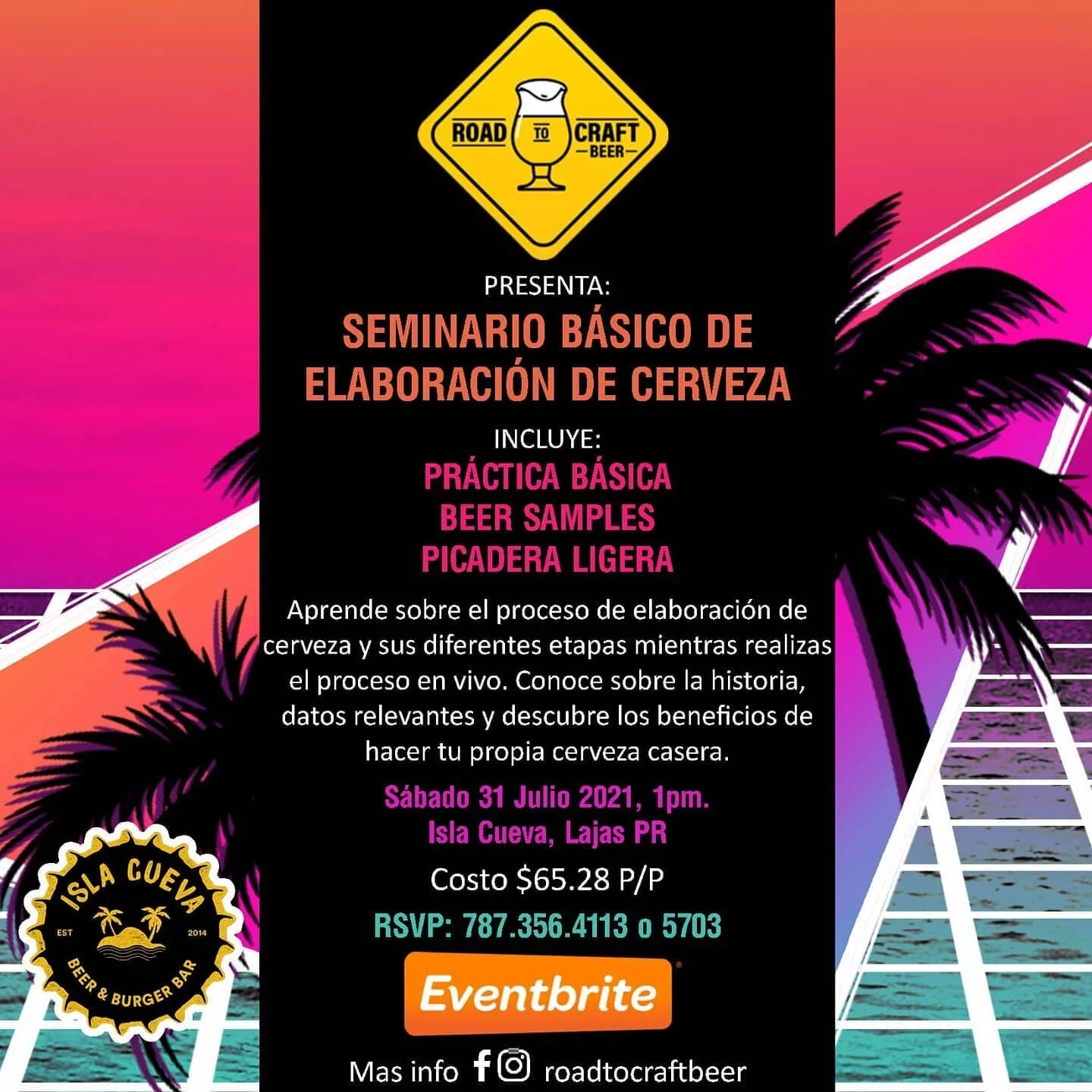Puede comprar su boleto para este taller directamente en este enlace de Eventbrite. También puede hacerlo a través de la cuenta de Facebook de Road to Craft Beer.