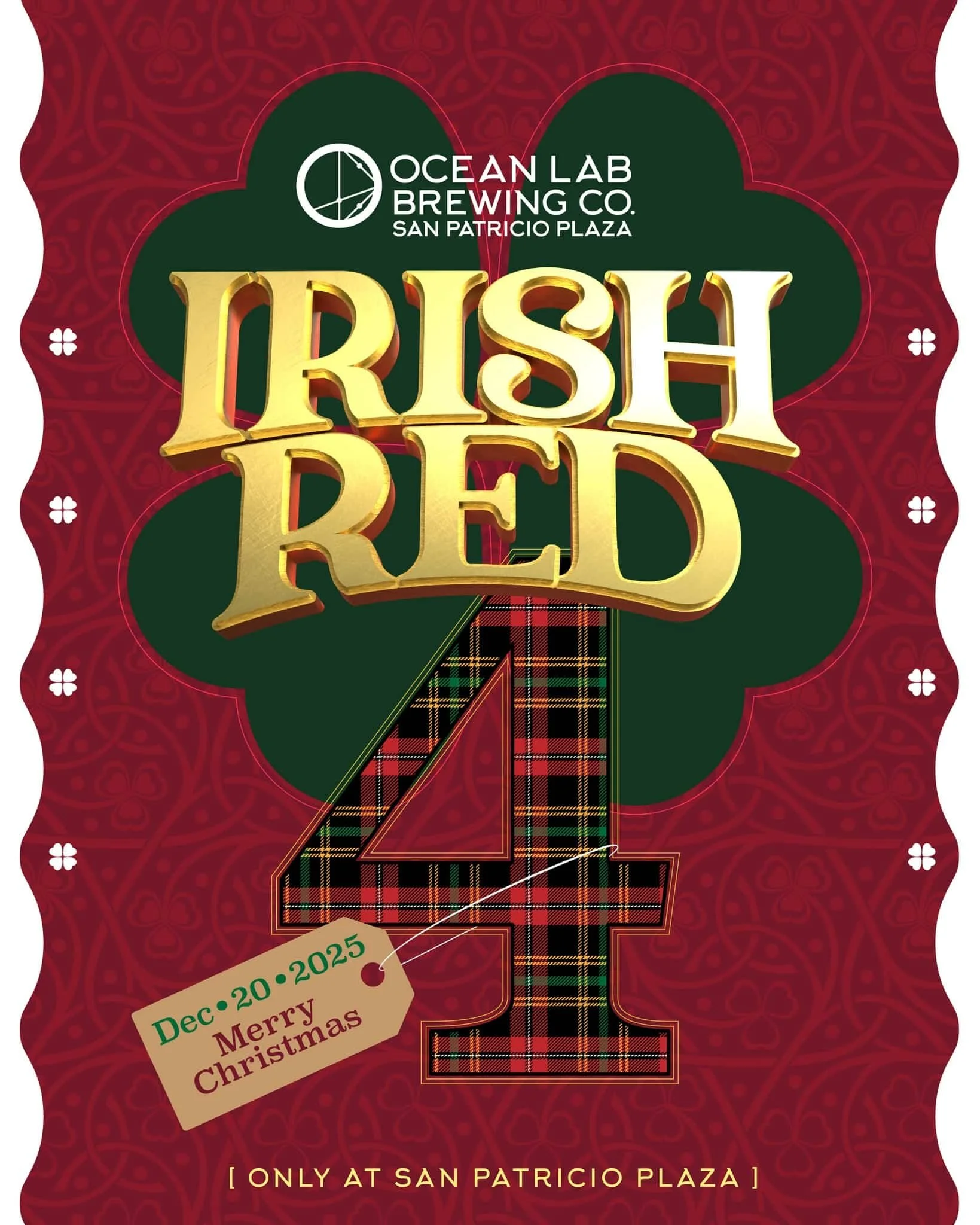 La Irish Red Ale regresa este sábado 20 de diciembre y estará disponible en el taproom de Ocean Lab Brewing en San Patricio Plaza. La misma está disponible en formato de barril, pero puedes pedirla para llevar en growlers y crowlers.