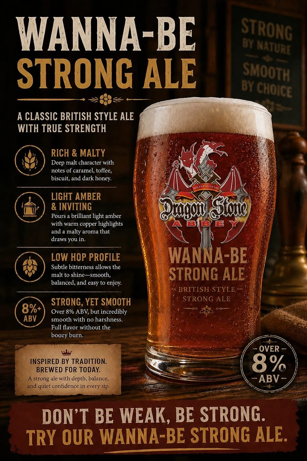 Dragon Stone Abbey anunció el lanzamiento de Wanna-be, una Strong Ale de 8% de alcohol por volumen, disponible desde este jueves en BrewTaller, en Río Grande.